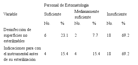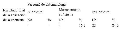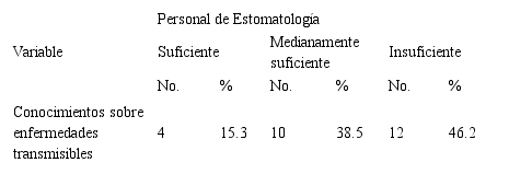 El nivel de conocimiento del personal estomatológico es insuficiente sobre el tema en cuestión.