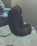 Se intervino quirúrgicamente con el diagnóstico de oclusión intestinal alta (Figuras 1 y 2). En el acto quirúrgico se observó masa tumoral que involucra el intestino delgado compuesto mayormente de pelo asociado a múltiples imágenes de áscaris.