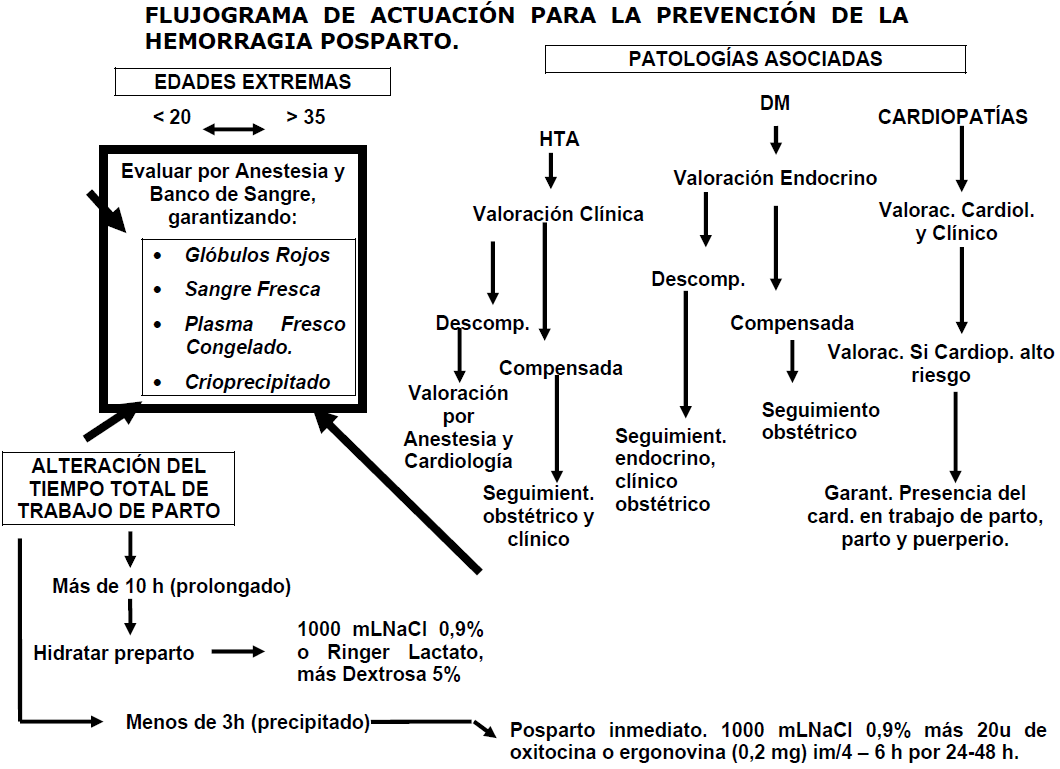 Se elaboró un flujograma (Figura 1) para actuar ante los diferentes factores de riesgo, en este caso estudiados y prevenir la hemorragia postparto.