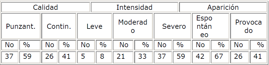 El 67 % de los pacientes hizo referencia al dolor que aparece de forma brusca.