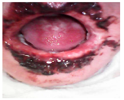 Se manejó como un SSJ, asociado a una NET, el tratamiento consistió en hidratación, antipiréticos y antiinflamatorios, plasma e inmunoglobulina, se aplicaron cremas y ungüentos para tratar la descamación de piel y mucosas, incluyendo vendajes oclusivos (Figura. 4).