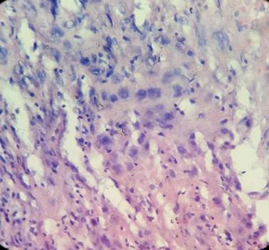 La paciente continúo con dolor bajo vientre y sangramientos vaginales, se realizó histerectomía total con anexectomía derecha, cuyo estudio histopatológico confirmó la invasión macroscópica de la pared uterina por la proliferación de las células trofoblástica, la presencia de estas células dentro de vasos sanguíneos en el útero y la infiltración del miometrio (Figura 1 y Figura 2).