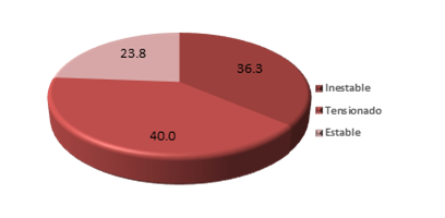 Referente a la situación emocional en la que se encontraban los estudiantes universitarios (Figura 1), se consideró que el 40 % estaba en una situación de tensión ante la problemática por la pandemia de coronavirus que se vive; asimismo, el 36,3 % vivía en un estado de estabilidad emocional; mientras que 23,8 % pasaba por un estado de inestabilidad.