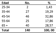 En la tabla 1 se muestra que en Guantánamo la mayor incidencia de la enfermedad se registró a partir de los 45 años (alrededor del 80 % de los casos), siendo los subgrupos más afectados el de 45-54 años (33 %) y el de 65 y más (29 %).