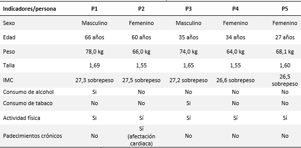 La muestra se focalizó en 5 personas originarias de la población de Juchitán, Oaxaca, México: 2 adultos mayores y 3 adultos jóvenes, quienes fueron seleccionados considerando haber sido portadores de COVID-19 (prueba antígenos positiva), el nivel de gravedad de la enfermedad (moderado leve) mediante diagnóstico médico y haber realizado actividad física constante antes de dicho padecimiento. Cabe destacar que las personas estudiadas experimentaron la enfermedad en el mes de enero de 2021, su proceso de recuperación transcurrió de marzo a mayo del mismo año.
