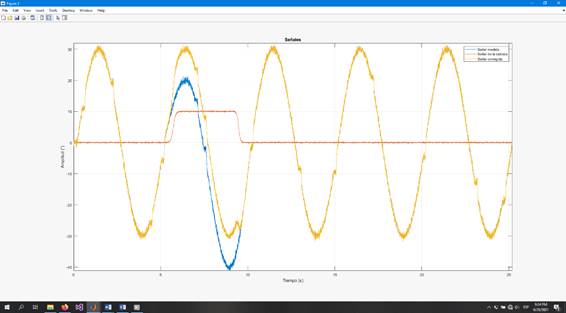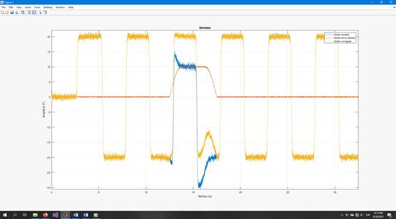 La figura 4 muestra el resultado de la implementación de la corrección en la señal EOGH sacádica descrita anteriormente, a la cual se le añadió la perturbación causada por el movimiento involuntario de la cabeza.