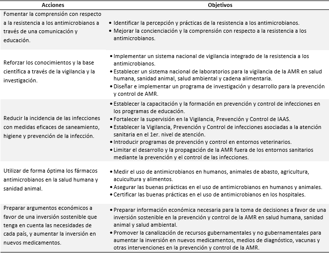 También presenta un Plan estratégico con sus respectivos objetivos del plan de acción mundial. Obtenido de Contreras, et al.8 (Tabla 1).