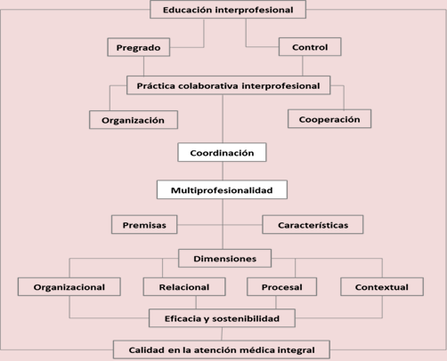 La implementación de la educación colaborativa e interprofesional se encamina a mejorar la colaboración entre diferentes tipos de profesiones en la atención salubrista y su extensión a la familia y la sociedad en diferentes contextos.9