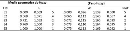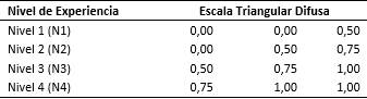 Se procedió a calcular los pesos difusos para cada experto, donde el conjunto de pesos difusos es importante no solo por razones de equidad y fácil interpretación, sino que también es necesario llegar a una solución única para algunos métodos como se muestra en la tabla 4.