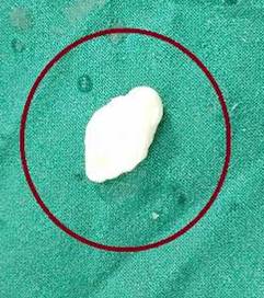 Una vez extraído el CLA (Figura 3), se realiza nuevamente la exploración artroscópica de la articulación para detectar la presencia de otros CLA y comprobar si está pediculado. La pieza extraída deberá ser enviada al departamento de Anatomía Patológica para determinar su composición histológica.25,30