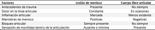 Entre las principales entidades a descartar en un paciente con CLA están las lesiones de menisco (Tabla 1).22,23