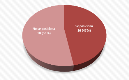 El 53 % (18) consideró el no posicionamiento (Gráfico 1), muy seguido del posicionamiento con el 47 % (16), sobre consideraciones, valga la redundancia, de la actuación de la Universidad de Ciencias Médicas de Ciego de Ávila como actor relevante en los procesos de producción, difusión y uso de los conocimientos que el desarrollo local demanda de este sector.