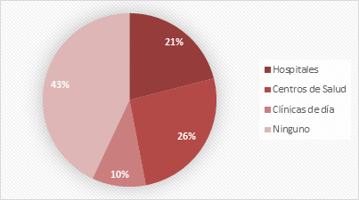 El 43 % de las gestantes no tuvo acceso a los servicios sanitarios en medio de la pandemia, ya que existió prioridad para la COVID-19 (Gráfico 2), así como se restringieron otros servicios como la educación. Sin embargo, el 26 % y el 21 % visitaron centros de salud y hospitales, respectivamente. Solo un 10 % no asistió a ninguno.