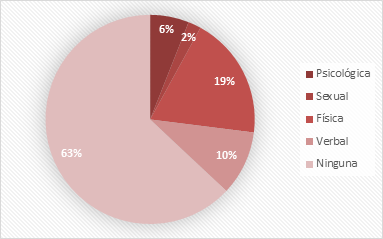 La mayoría de las embarazadas (63 %) no experimentaron ningún tipo de agresión intrafamiliar en el periodo de la COVID-19; sin embargo, el 19 % alegó recibir agresión física, el 10 % agresión verbal, el 6 % agresión psicológica y hasta hubo un 2 % que sufrió agresión sexual (Gráfico 4).