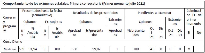 Es innegable que el cierre del curso escolar 2020-2021 y la planificación del curso 2021-2022 en la Facultad de Ciencias Médicas de Guantánamo, demandó de un profundo trabajo metodológico para dar respuesta a esta interrogante. Fue ese trabajo metodológico el que permitió realizar las adecuaciones necesarias en cada asignatura, desde la flexibilidad del currículo y la potenciación de la calidad de los procesos, pero con máximo respeto del currículo base.7 Ello propició que los estudiantes de años terminales, presentes en su mayoría en la lucha contra la COVID-19, adquirieran las mejores experiencias integradas para el abordaje de la profesión, y logró que el Proceso Docente Educativo (PDE) no se detuviera. Por lo que, en julio de 2021, educandos de años terminales de todas las carreras que se cursan en dicha Facultad de Ciencias Médicas culminaron el curso 2020-2021, entre ellos, los estudiantes del 6to. año de la carrera de Medicina. Ello también ocurrió (desde sus propias estrategias) en otras provincias del país.13,14
