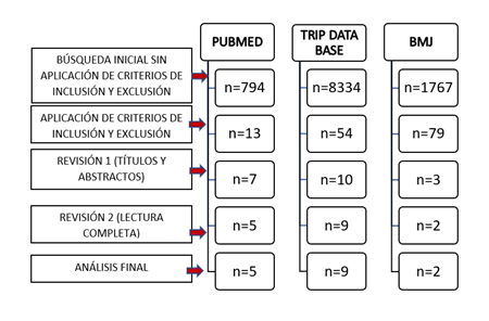 Estudios publicados en bases de datos indexadas en PubMed, Trip Medical Database, y British Medical Journal (BMJ).
