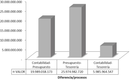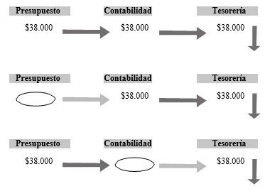 Elaboración propia, 2017La figura muestra la falta de registrar el ingreso que afecta la ejecución de los ingresos; pero sí está el registro contable y el de la tesorería; si esto no se detecta fácil para hacer la respectiva corrección, se entregaría una información que al ser auditada no es correcta, hay un faltante.