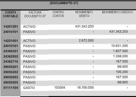 Elaboración propia, 2017.Esta es la principal característica para tenerla en cuenta porque en la tabla anterior muestra causación de cuentas por pagar a terceros, que no están mostrando ejecución presupuestal en el momento, pero que hubo una factura que dio origen a estos pasivos al modificar el presupuesto en la generación de la obligación por el valor total (Paso 1).