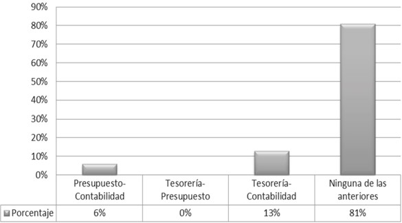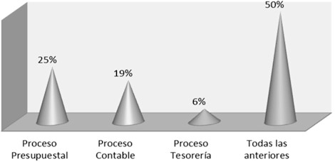 Elaboración propia, 2017.El resultado obedece a que cada una de las personas encuestadas conoce la parametrización, pero del proceso al cual pertenece, porque no existe la homologación que permita la articulación para su respectiva conciliación de los datos arrojados al final de un periodo fiscal. Fue aquí donde el ordenador del gasto hizo mucho énfasis expresando la necesidad de buscar un mecanismo para que la información sea más entendible y fácil de conciliar (Figura 24).