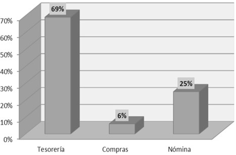 Elaboración propia, 2017.Se encontró que el personal que interviene en el área financiera tiene un nivel de educación alto y se convierte en una fortaleza para la institución, porque facilita el proceso por el conocimiento y la idoneidad para manejar el tema financiero y el porcentaje mayor (50%) son los que tienen la máxima “responsabilidad” de la entrega oportuna de la información (Figura 1).