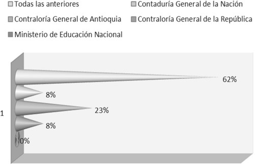 Elaboración propia, 2017Este resultado (Figura 19) muestra la “transparencia” de la información, porque es la misma al momento de su divulgación para los usuarios que la requieran. Este resultado obedece a que los diferentes entes de control piden la misma información pero en formatos diferentes; sin embargo, para conciliarlos se dificulta la respectiva comparación e identificación de los resultado