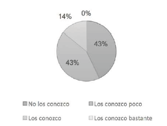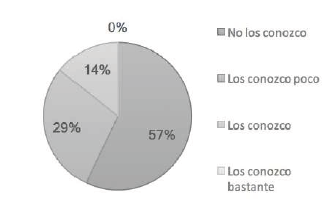 Respecto a los ODS, las empresas del sector químico del Área Metropolitana del Valle de Aburrá mostraron una tendencia que apunta a un bajo grado de conocimiento y entendimiento sobre los ODS. Según se observa en Figura 15, de las empresas encuestadas solo el 14% de ellas los conocen; el 29% lo conocen poco, es decir, han escuchado de ellos (el porcentaje apunta a dos empresas); y finalmente, el 57% no lo conocen, la cual es la respuesta dada por las cuatro empresas restantes.