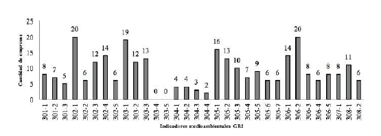 En consecuencia, para la recolección de la información, se descargó el reporte de sostenibilidad más actualizado que estuviese en la GRI Database, de las empresas seleccionadas y se observó el nivel de reporte para cada uno los indicadores propuestos en la guía GRI, por lo que resultó pertinente buscar el glosario de reporte de este tipo de indicadores. Posteriormente. se procedió a tabular la información en una hoja de cálculo, en la cual se realizó una codificación binaria para cada indicador de la serie ambiental del GRI, donde los que fueran revelados se le asignaría el número “1” y los que no fueran revelados se le asignaría el número “0”. Esto último, se llevó a cabo para cada una de las compañías de la muestra, obteniendo información de cuáles eran los indicadores con mayor presencia en los informes de las empresas latinoamericanas.