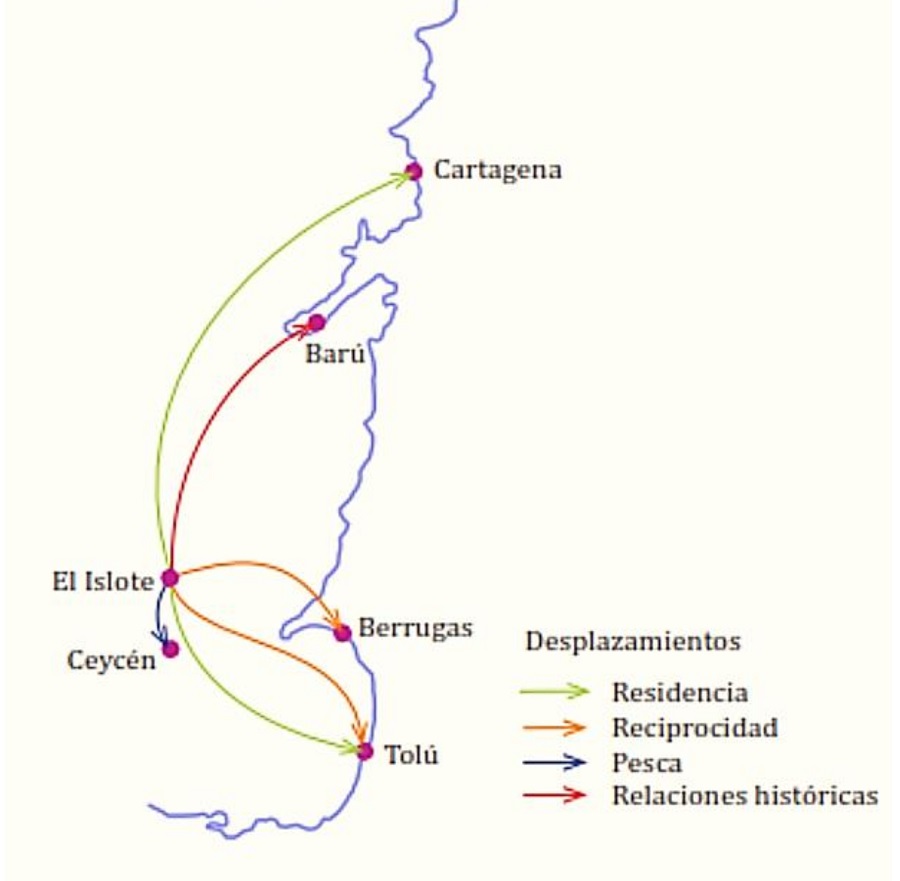 Estos intercambios contribuyeron a expandir las relaciones entre islas y continente. Aunque el relato anterior nos habla de los años cincuenta del siglo XX, los itinerarios descritos son formas características de sociabilidad, en la zona que vincula al Islote con el litoral. En el vaivén, los hombres conocían nuevos amigos, se reencontraban con parientes y tenían relaciones esporádicas con mujeres. Así, tanto el proceso de arranchamiento, como la posterior llegada de pescadores de Berrugas, Tolú y Rincón, deben entenderse como producto de dinámicas de itinerancia entre islas y continente.