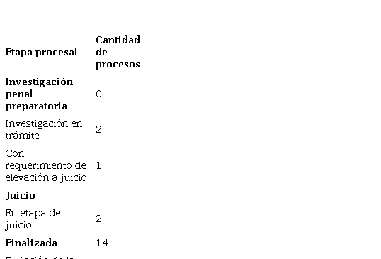 Los femicidios ocurridos en Olavarría durante el período analizado durante 2001-2023 tienen diferentes etapas procesales de los procesos penales.