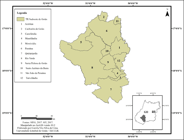 O projeto de extensão teve como objetivo geral: desenvolver, implementar e manter ações extensionistas e de pesquisa no Território Rural do Sudoeste Goiano (Figura 1) por meio das ações integradas a serem definidas no âmbito da política do MDA para a capacitação e a gestão social; consolidação das políticas públicas de desenvolvimento rural; e, também, pela inclusão produtiva nos territórios definidos no projeto.