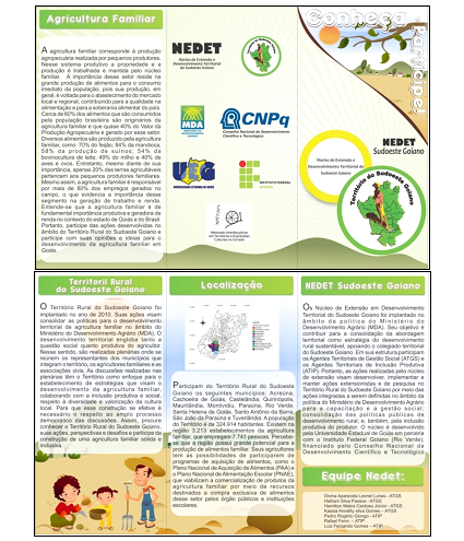 Entre as atividades desenvolvidas pelo NEDET do Sudoeste Goiano esteve a criação e o desenvolvimento de atividades que contribuíssem para o mapeamento e avaliação das políticas implementadas nesse Território e para a capacitação e qualificação, por meio de conferências, dias de campo, palestras e oficinas, dos agentes para a promoção do desenvolvimento rural sustentável.