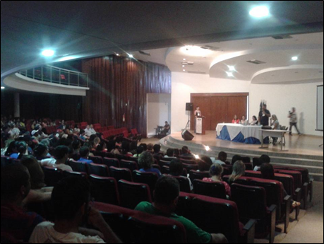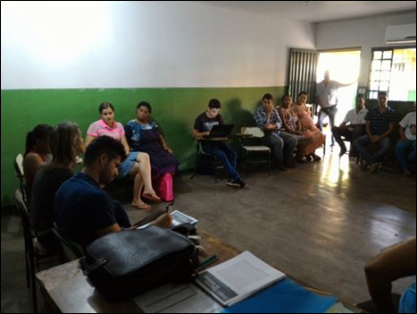 Alguns jovens do Território, em virtude da agenda estabelecida, puderam participar do evento “Ciranda Territorial da Juventude”, que ocorreu no mês setembro de 2016 na cidade de Silvânia[7]. No evento, puderam conhecer políticas e ações do governo destinadas aos jovens do campo. Posteriormente, as informações obtidas pelo grupo que participou (total de quatro jovens) foram disseminadas por meio das reuniões no Território e do “I Colóquio da Juventude do Território Rural do Sudoeste Goiano” (Figura 6), realizado no dia 12 de setembro de 2016 no assentamento Ponte de Pedra, no Município de Paraúna.