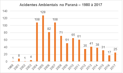 Como forma de aperfeiçoar as informações, foi realizado um levantamento quantitativo dos registros históricos dos acidentes que se caracterizam emergências ambientais no Estado do Paraná e em documentos disponibilizados pela Coordenadoria Estadual de Proteção e Defesa Civil (CEPDEC/PR). Adotou-se o recorte temporal compreendido entre 1980 e 2017 para pautar a pesquisa devido à existência de subsídios adequados para as comparações realizadas entre os órgãos que possuem dados disponíveis.