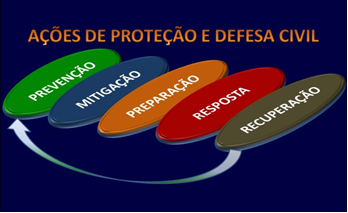 Também, chama a atenção a sigla P2R2, oficializada pelo Decreto nº 5.098/2004, comumente confundida com a antiga forma de abreviar as ações globais de defesa civil (prevenção, preparação, resposta e reconstrução), posteriormente recebendo a adição da mitigação, passando a compreender cinco ações (Figura 3), elaborada a partir da Lei Federal nº 12.608/2012.