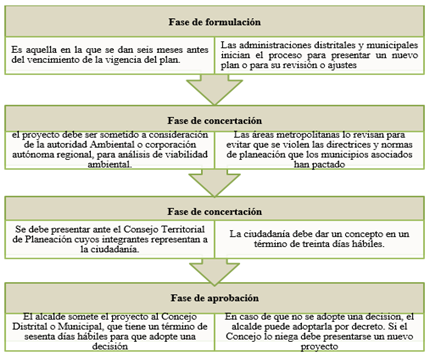 Siguiendo con el análisis de los planes de ordenamiento territorial, es importante decir que estos tienen unas fases para su elaboración, revisión y ejecución.