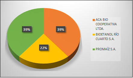 Las tres empresas bioetanoleras, que se observan para analizar la cadena del bioetanol en la Provincia de Córdoba tienen una conformación empresarial diferente: una asociación de productores -Río Cuarto- un joint venture entre AGD y Bunge Sudamérica -Alejandro Roca- y una cooperativa de segundo grado, como es el caso de ACABIO -Villa María-.