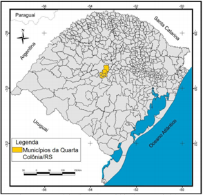 O contexto sócio-histórico do território que hoje constitui a Quarta Colônia resultou da criação das colônias alemãs e italianas pelo governo imperial no final do século XIX com o objetivo de ocupar terras devolutas (desabitadas) e fazê-las produzir, assim como acontecia com as demais áreas das terras disponíveis no Brasil em meio às crises na Europa. Além de fatores econômicos e políticos das transformações do capitalismo, a Itália incentivava a vinda de imigrantes para o Brasil numa utopia libertadora na América, vista como um mundo de liberdade, alimento, trabalho e terra, diferentemente dos retratos da Itália em crise, opressora de padrões e rígidas regras, impostos, disputas religiosas e sua recente unificação (ZANINI, 2006).