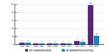 Novas maneiras de fazer política, que envolvam de forma mais consistente a participação popular, têm emergido como alternativa para superação desse cenário. Iniciativas com formatos participativos já obtiveram sucesso eleitoral no Legislativo em diversos países, inclusive Brasil, onde a emergência de mandatos focados na participação pública pode ser observada há mais de 20 anos. Entre 1994 e 2018, Secchi et al (2019) mapearam 94 pessoas que desenvolveram, em suas candidaturas, instrumentos e lógicas de mandato coletivo ou compartilhado, concorrendo em 110 campanhas legislativas em todo o Brasil, dispersas em 50 municípios e 17 estados da federação. Os cargos disputados foram de vereador, deputado estadual, deputado federal e senador, representando 22 partidos políticos e alcançando, juntos, mais de um milhão e duzentos mil votos válidos, mas verificou-se que esse tipo de candidatura/mandato tem sido mais comum para o cargo de vereador. (SECCHI et al., 2019).