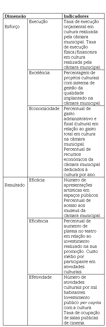 Nomeadamente, para o estudo que aqui se apresenta, há que se perceber o Estado, o Município, como o agente protagonista da ação (ou ausência) em torno das políticas culturais estabelecidas no território. É pelo potencial de intervenção na realidade da cultura local que as câmaras dos municípios portugueses atuam sobre o desenvolvimento simbólico, com impacto em outras dimensões. E mais: é pela ação intervencionista, como política cultural, que muitas vezes é necessária a alocação de recursos públicos à cultura. Uma intervenção que requer bons mecanismos de governo e que sugerem uma gestão pública que avalie os resultados das ações ao longo do tempo, procurando ser eficaz, eficiente, efetiva, entre outras. Em outros termos, a ação governamental com fins previamente estabelecidos na cultura precisa de uma constante e adequada avaliação, podendo os indicadores constituir o mecanismo apropriado para tal objetivo.