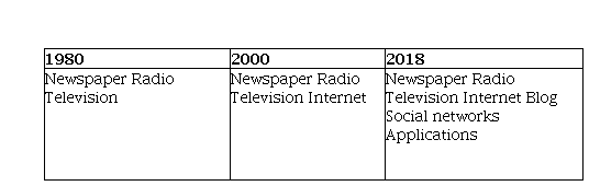 The table below shows the development of media and technologies between the 1980s and 2018 in Blumenau. In this way, it is possible to contextualize the transformations that communication technologies have undergone, and which coincide with the vehicles that Blumenau used to disseminate information on the preparation, response, and recovery from the disasters that affected the region.