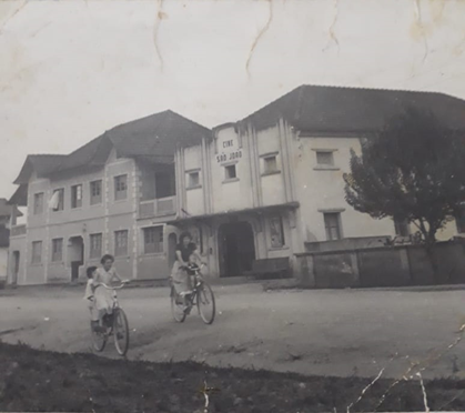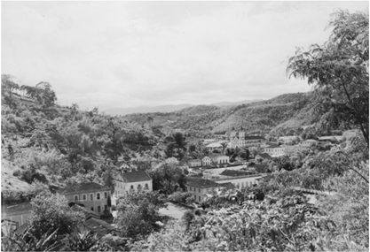 Esta fotografia dos trabalhos de campo do IBGE, de 1953, mostra Nova Trento, então cidade mais importante do Vale em termos populacionais (SANTA CATARINA, 1958). De fato, é difícil relacionar o contexto das cidades do Médio Vale com os atributos da modernidade expressos nos trabalhos que analisam a emergência dos cinemas nas cidades brasileiras no século XX. Ao contrário, é a ruralidade que se destaca, indicando um novo campo de pesquisa relativo especificamente ao surgimento dos cinemas no estado de Santa Catarina e sua realidade de predominância de pequenas cidades, e, durante todo o século XX, a ausência mesmo de uma capital que polarizasse todo o território: a associação entre as salas de cinema e o mundo rural.