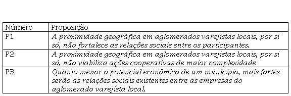 Proposição P2. A proximidade geográfica em aglomerados varejistas locais, por si só, não viabiliza ações cooperativas de maior complexidade.
