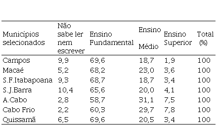 Em relação a essa diferença é interessante observar que até o presente momento, neste estudo, estamos trabalhando com a população residente nas comunidades pesqueiras e não incluímos nenhum filtro relativo à ocupação e setor de atividade. Ou seja, não estamos considerando apenas os trabalhadores que vivem da pesca. É preciso considerar que um total de 1.699 trabalhadores residentes nestas comunidades (16% da PEA ocupada) não trabalham na pesca. E é justamente nos municípios onde a situação é diferenciada - Macaé e Cabo Frio - que o mercado de trabalho se apresenta mais diversificado e com maiores oportunidades: no primeiro em função da indústria petrolífera e parapetrolífera; no segundo, pelo setor de turismo. Como se trata de população com baixo nível de escolaridade, é provável que os trabalhadores que migraram de setor de atividade continuem exercendo ocupações que exigem pouca qualificação profissional, mas são em média melhor remunerados do que aqueles que ainda permanecem na pesca.