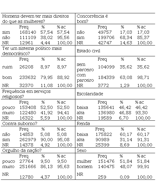 WVSA. World Values Survey Association. World Values Survey: Values Change the World. Disponível em: http://www.worldvaluessurvey.org/WVSDocumentationWV6.jsp. Acesso em: março de 2014.