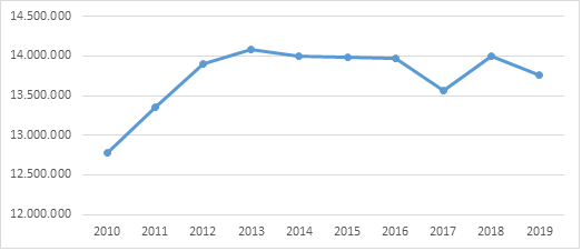 Posto isto, o Gráfico 1 apresenta um panorama geral da evolução do número de beneficiários de 2010 até 2019.