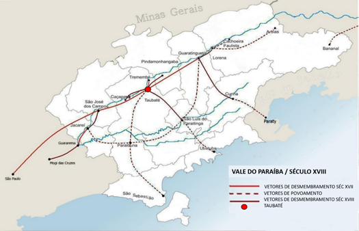 A convivência com crises esteve, de certo modo, sempre presente em cada ciclo que se encerrava na precária economia da região. Taubaté, seu centro mais antigo, elevado à vila em 1645 e localizado às margens do rio Paraíba, foi o principal semeador de outros centros, localizados sertão adentro. No entanto, uma sensível fase de dinamismo só veio a ocorrer na passagem dos séculos XVII/XVIII, quando o fornecimento de víveres, animais e artefatos às zonas de mineração possibilitou uma primeira experiência de vida urbana (MÜLLER, 1969). Contudo, tal situação teria pouca duração, sendo interrompida por volta de 1725. Com a entrada em uso da ligação direta na rota de entre as minas e o principal porto de exportação da colônia, o Rio de Janeiro, a economia regional sofreu uma espécie de retrocesso. Voltava, assim, ao estado da produção agropecuária de subsistência, semelhante aos primeiros tempos da ocupação daquele território.