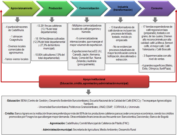 En este escenario, la cadena productiva del café en Pitalito denota que este producto no solo está en la base de la economía municipal, sino que también explica la identidad regional construida desde la colonia alrededor del valle de Laboyos, como epicentro comercial y económico de la región. Es así como la cultura del territorio, definida por historias y formas del saber-hacer, incide de manera determinante en la organización económica y social, motivo por el cual sería deseable que las políticas de desarrollo productivo pudiesen aprovechar el capital social e histórico, asumiendo un marcado enfoque territorial. En tal sentido, el estudio de la cadena productiva del café en Pitalito brinda un mensaje relevante para el diseño de políticas cafeteras.