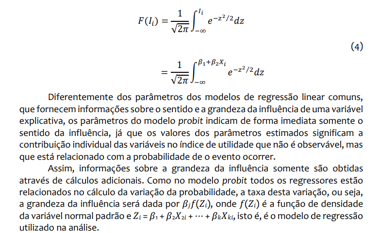 O modelo escolhido baseia-se na utilização de uma variável dependente Ii determinada por uma ou mais variáveis explanatórias Xi. Através da variável dependente ou índice de utilidade observável é determinada a decisão da i-ésima observação do modelo, ou seja, quanto maior o valor do índice Ii, maior a probabilidade de uma decisão positiva para a observação. O índice Ii pode ser definido como: