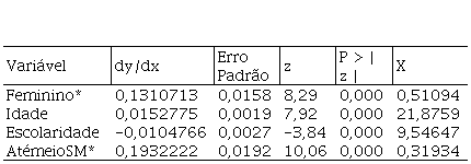 (*) dy/dx é para a mudança discreta da variável dummy de 0 para 1
