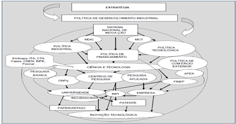 Villaschi (2005) defende que o SNI brasileiro apresentou resultados insatisfatórios na década de 1990, motivados, dentre outros fatores, pela não inclusão da política tecnológica como indutora do desenvolvimento, aliada à falta de domínios (tecnológicos, econômicos e institucionais), fator este que aconteceu apenas na década seguinte. Ao analisar as contribuições de Simões et. al. (2002), é perceptível que as atividades científicas e tecnológicas do Brasil apresentam diferenças em seus aspectos regionais, onde a partir de uma análise municipal foi verificado protagonismo das regiões Centro-Sul, no que diz respeito a patentes e produção acadêmica (artigos científicos).